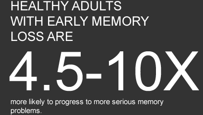 A healthy adult with early memory issues is 4.5 to 10 times more likely to progress to more serious memory problems, such as dementia or Alzheimer’s.3